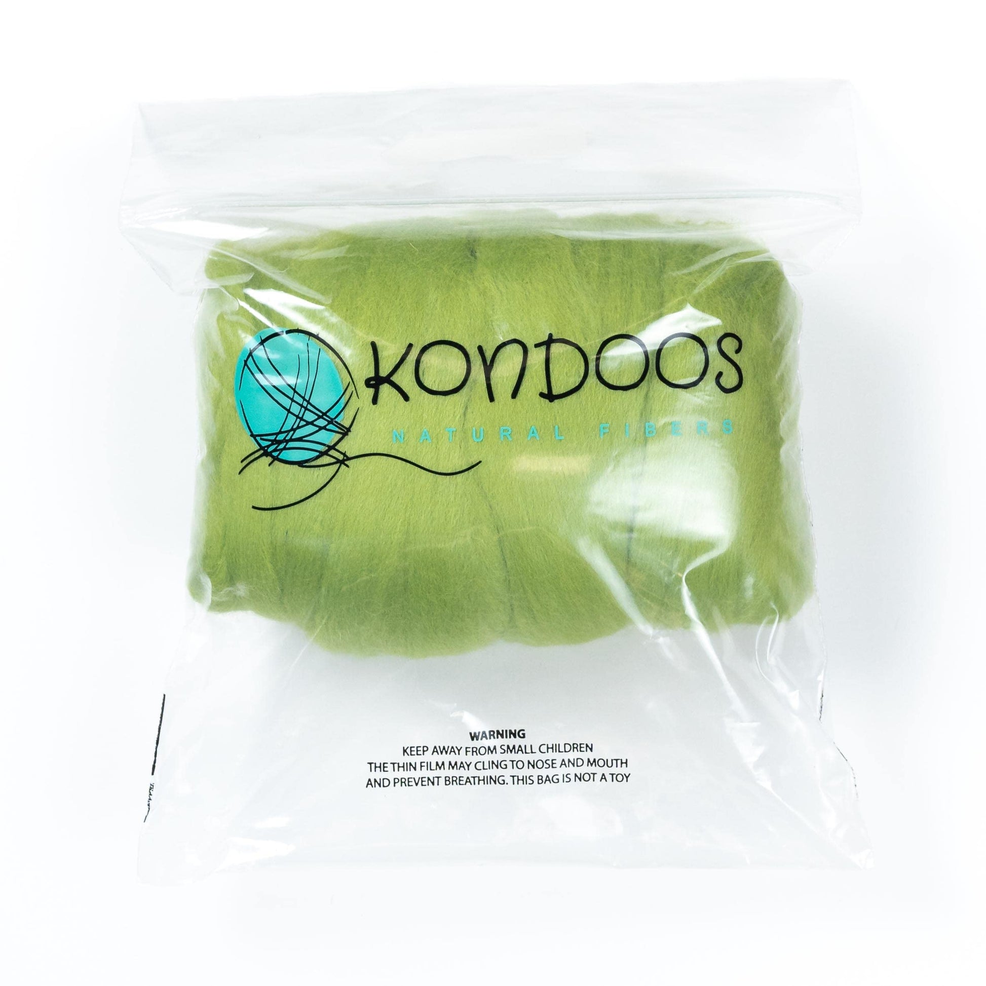 Kondoos Colored Natural Wool roving, 8 OZ. Best Wool for Needle Felting, Wet Felting, handcrafts and Spinning. (Green Apple)